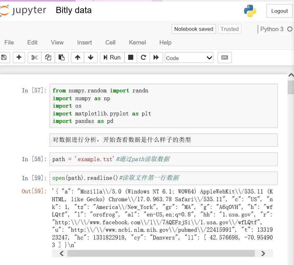 open(path).readline()#读取文件第一行数据import json