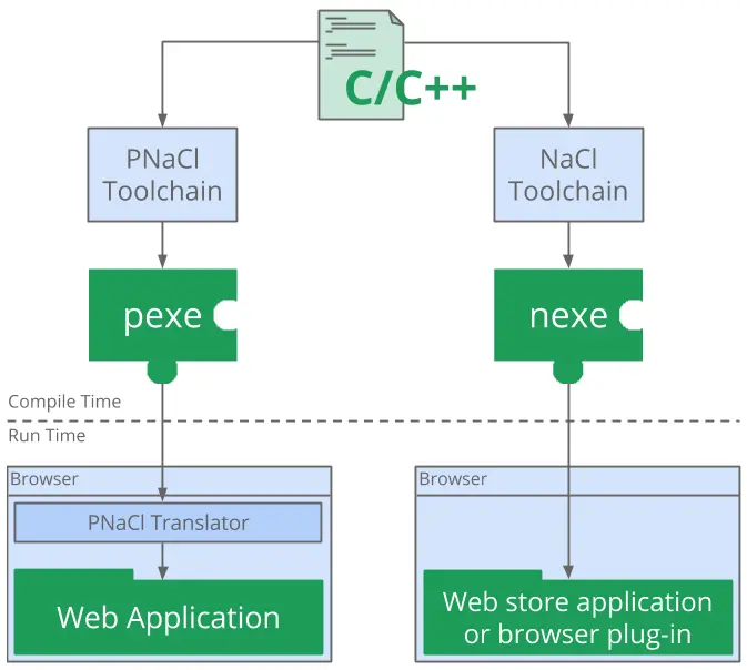NaCl使用SFI技术,使浏览器可以安全地运行原生代码,并可以使用CPU的全部功能,PNaCl为NaCl增加了可移植性