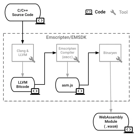 WebAssembly的MVP专注于C/C++,所以编译主要是通过Clang/LLVM/Emscripten等实现