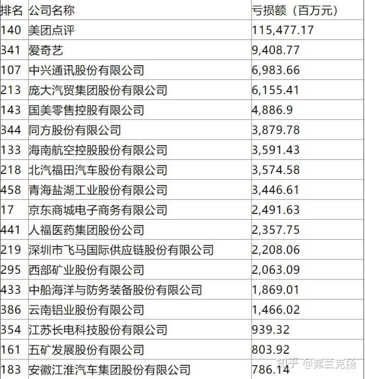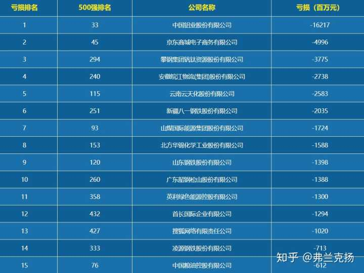 下图是2017年的国内企业亏损排行榜。
