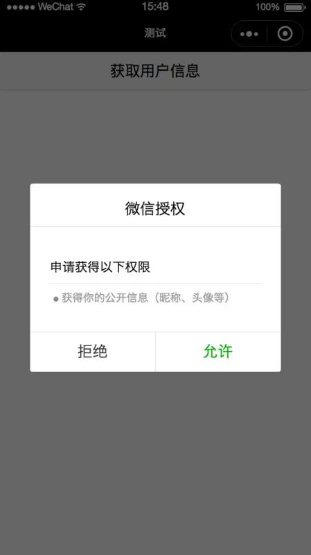 点击按钮,出现授权弹窗,根据用户的选择,会执行success或者fail的回调: