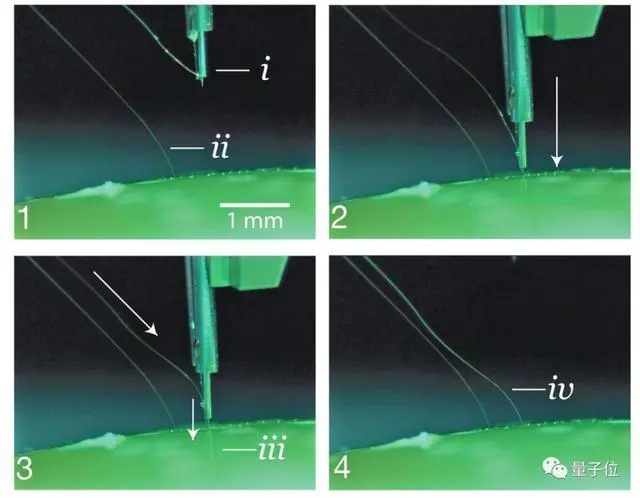 下图显示了用这种机器人把电极插入琼脂“果冻”的过程。