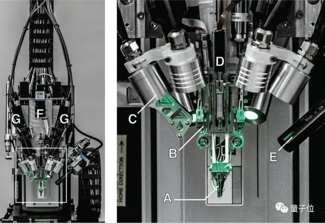 穿线机器人还包含成像组件(图中的E),用于将针引导到线环,插入目标,实时查看和验证。