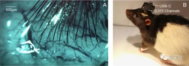 Neuralink使用换向电缆进行电生理记录,可以不受动物活动的限制。System A可以同时记录1536个通道中的1344个,在记录时可以任意指定通道配置的精度。系统B可以同时记录所有3072个通道。二者使用在线检测算法实时处理数字化宽带信号以识别动作电位(尖峰信号)。