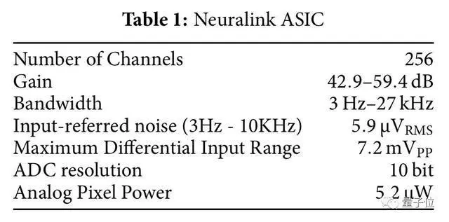 Neuralink专用集成电路的性能参数如下表: