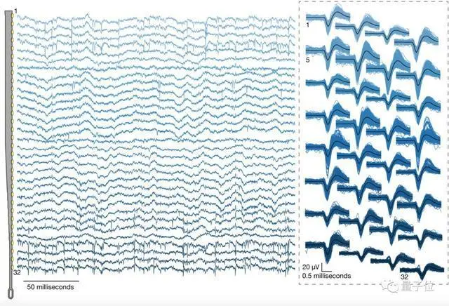 研究人员记录了所有1280个植入通道。在这个阵列种,尖峰的产生量是通道的53.4 %,许多尖峰出现在多个相邻的通道上,这和在其他高密度探针中观察到的结果一样。在19个脑机接口手术中观察到尖峰产生量为59.10±5.74%,最高值为85.5 %。
