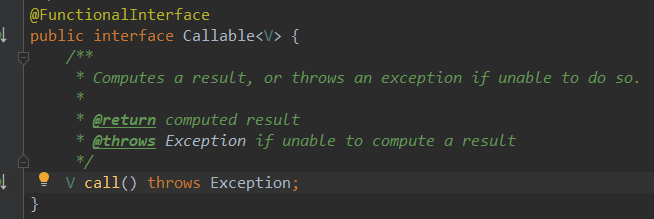 Callable类似Runnable接口,它有一个call方法,它的作用和Runnable中的run方法完全一致,但也有区别 Callable的call->有返回值,可以抛出任意异常 Runnable的run-> 无返回值,不能抛出未检查的异常