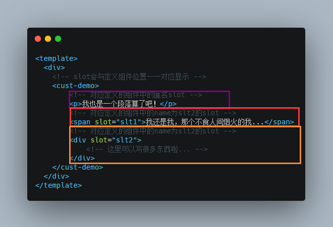template处不能用其他标签替换,slot=""时既可以是template,也可以是普通标签。v-slot:default="slotProps"v-slot:stl="slotProps"这里的default也都带着吧;只有匿名的时候可以不带,但是如果用#缩写那必须都要。3.0后原来的slot和slot-scope写法将会被完全废弃。当然如果你的项目中的vue是2.6.0之前的版本,v-slot也不能用。- 注意:要修改