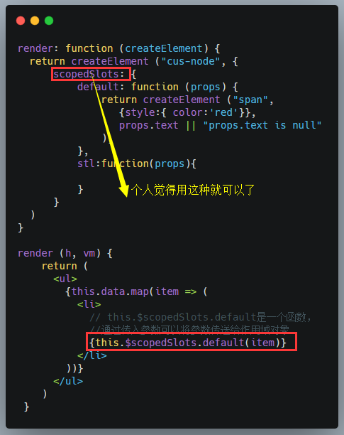 vm.$scopedSlots在使用渲染函数开发一个组件时特别有用