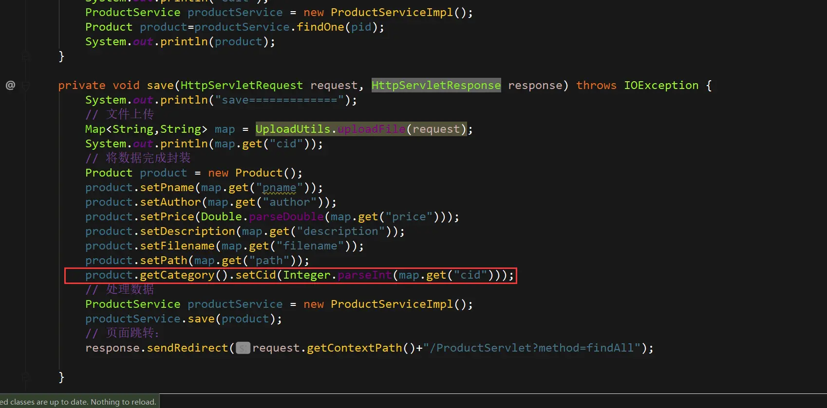 报错:java.lang.NumberFormatException: null flager 2019-07-18 483 阅读1分钟 最近在一个在线购物JavaWeb项目,所用的技术栈有Html+css+JSTL+Servlet+JSP+Mysql 在写添加页面购物页面和向数据库里面提交数据报错如下: 报错提示页面 在查找资料 blog.csdn.net/qq_32340877… 在看了整个的控制层的逻辑后发现 product_add.jsp 页面的,name属性没有设置为“cid” 在 更改后 name=“cid” 再次运行结果如图,条件成功。 总结 细心 要理清楚整个逻辑