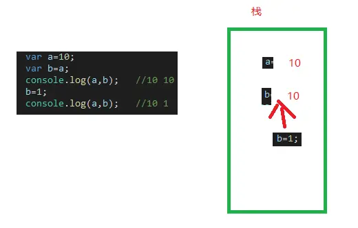 A==B比较a,b的类型是否一致。一致,直接比较他们保存在栈区的值。如果类型不一致,先进行数据类型的转换。然后再比较。A===B先做类型判断,如果一致(不一致,直接false),再做值的比较,相同为true,不等为false。