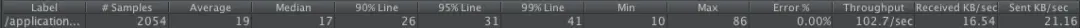 现在我们来分析测试2和测试3的数据:可以看到平均响应时间(Average)差不多没有很大的变化。再来看看吞吐量,测试2为64.9次/秒,测试3为102.7次/秒。