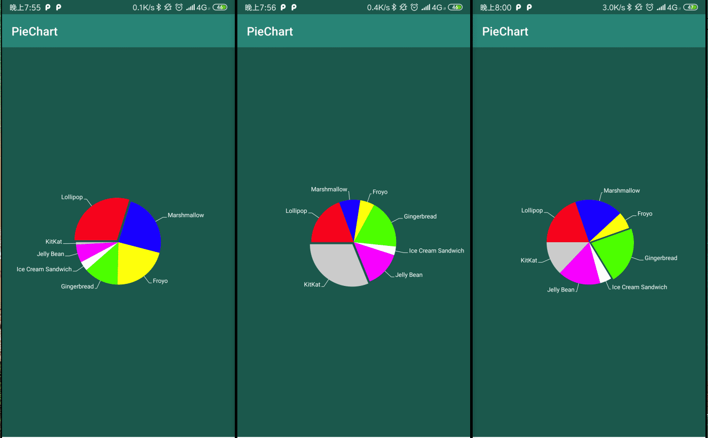 饼图,android 图表。会根据定义PieChartView的大小自动居中,所以如果要调整位置,只需要在xml更改PieChartView位置大小即可。