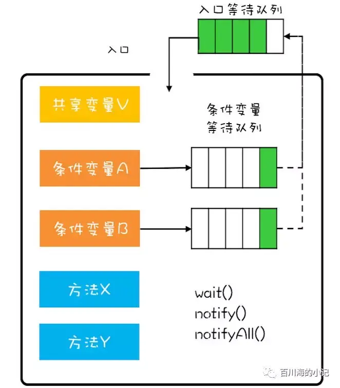 而MESA的做法,就是设计了入口等待队列,作为线程B执行的缓冲,对执行效率和实现的灵活性做了平衡的选择。