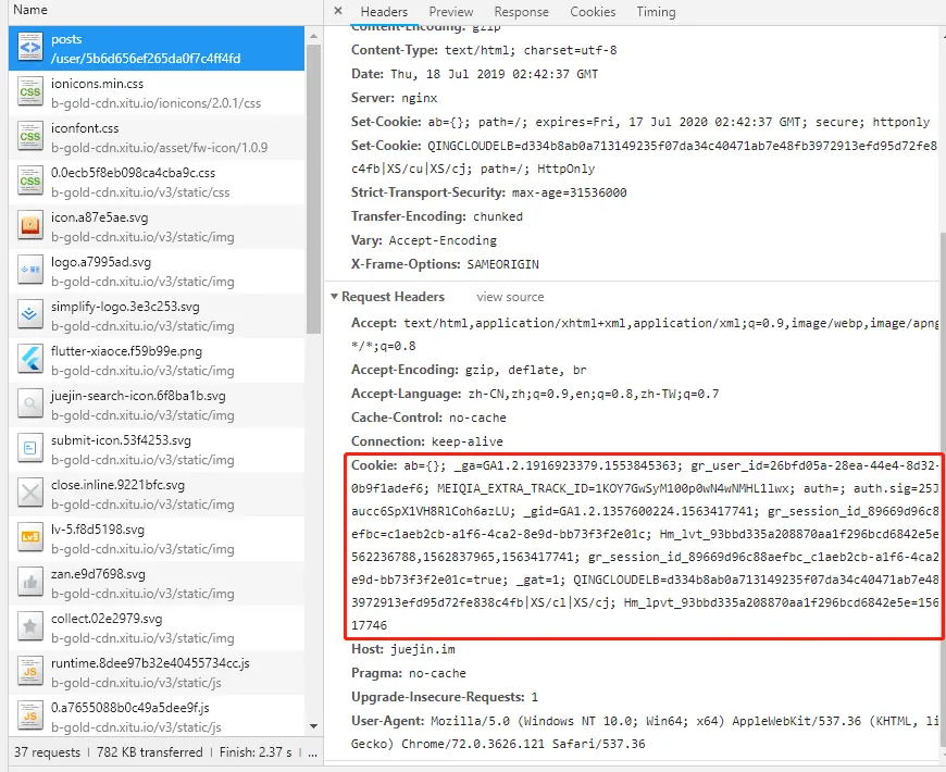 静态资源往往并不需要 Cookie