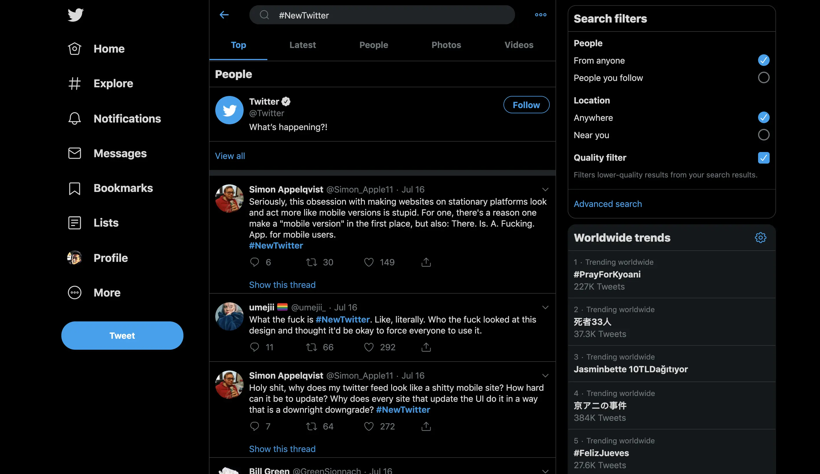 2. 推特网站 UI 更新翻船,大家纷纷抱怨新 UI 设计不合理。