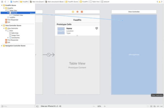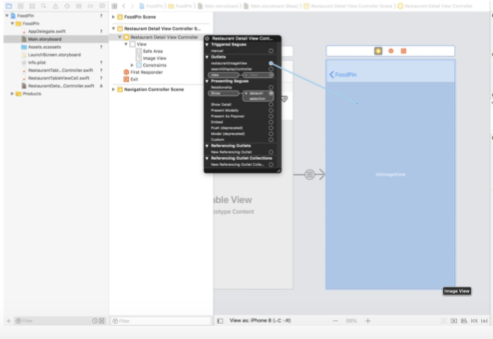 - 创建一个outlet名为restauranImageView给图片 - 我们需要一个引用来更新详细视图控制器的图像视图.
