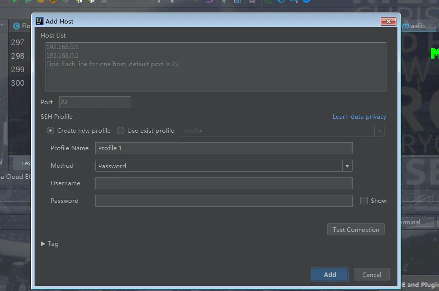 添加服务端地址和支持ssh协议和账号密码