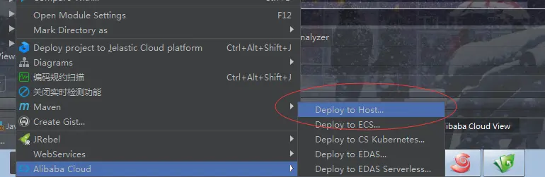当前项目右键选择Alibaba Cloud中Deploy Host选项
