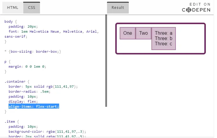 当你看见以 align- 前缀开头的属性时,说明它是控制 Flexbox 交叉轴上对齐的。align-items 操作交叉轴对齐,所有 Flex 项目在弹性线(flex line)内对齐。