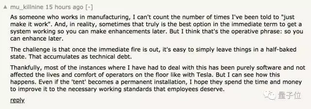 庆幸的是,还好我做的是软件,不像特斯拉工人那么惨,但我能理解这是怎么一回事。即使这个“帐篷”会变成永久设施,我也希望他们能投入时间和金钱提升工人们的工作环境。