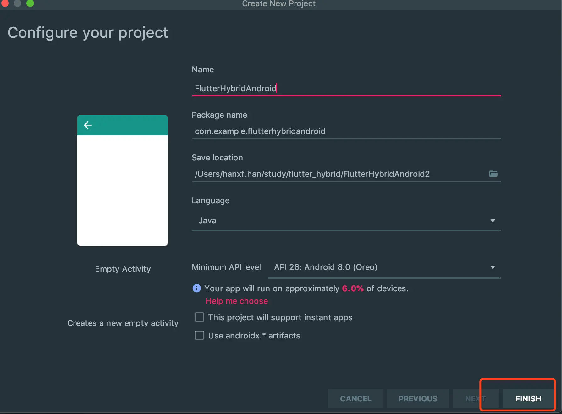 在实现这两者之间的调用之前,我们先准备两个项目(Android 端 和Flutter 端)