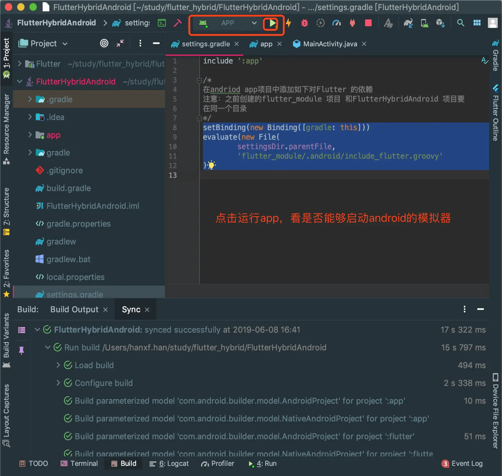 }implementation project(':flutter')8.Android项目对Flutter项目的调用方式可以通过以下两种方式来实现