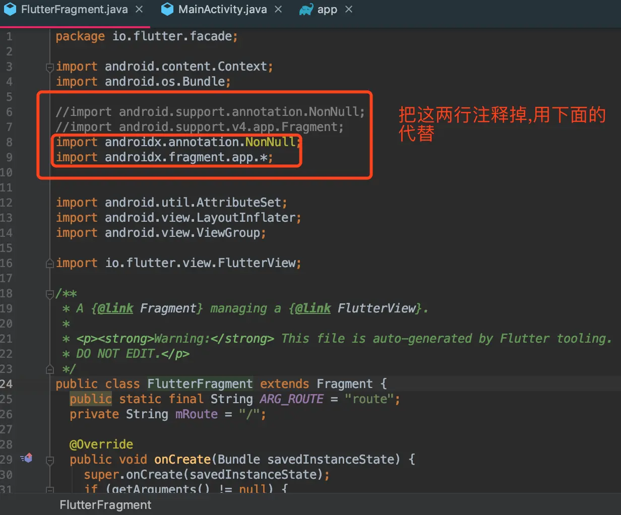 tx.replace(R.id.someContainer,Flutter.createFragment(initParams));