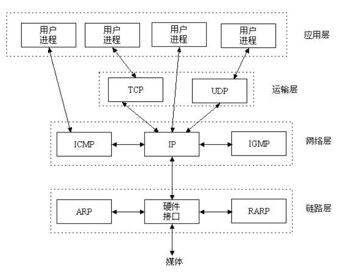 简而言之,互联网构架有4大部分组成,从底层逐步往上走: