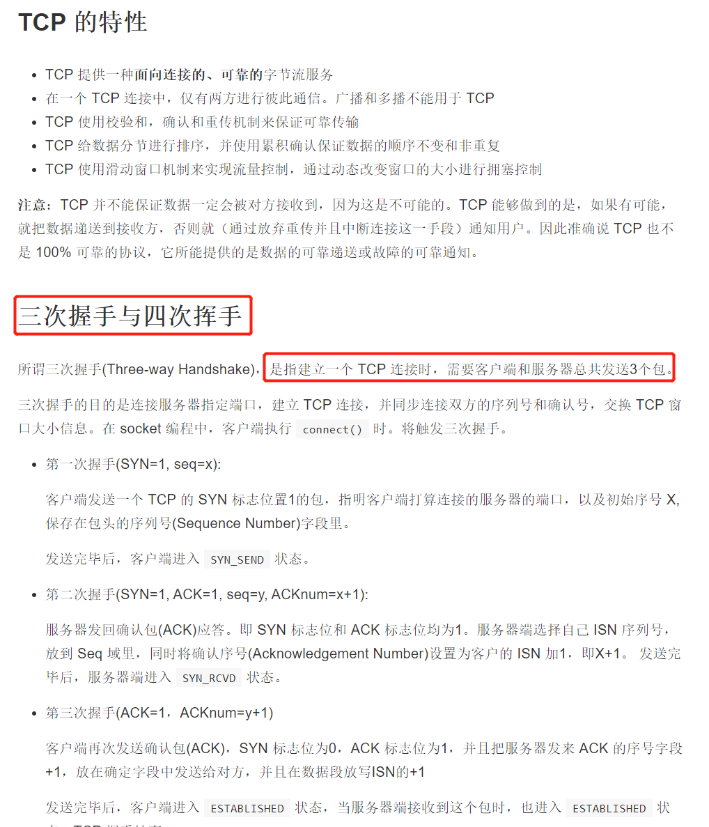 第三层: 传输层-Transport layer。知道了计算机的位置,那么如何在两个计算机之间传输数据呢,比如如何解码,复原码,丢包处理等。另外计算机上有多个端口port怎么知道传输给哪个端口呢,这就是TCP协议,通过该协议可以实现两个设备或者计算机直接的直接数据packet传输,这个协议通过三重握手协议来实现数据解码,复原等操作。