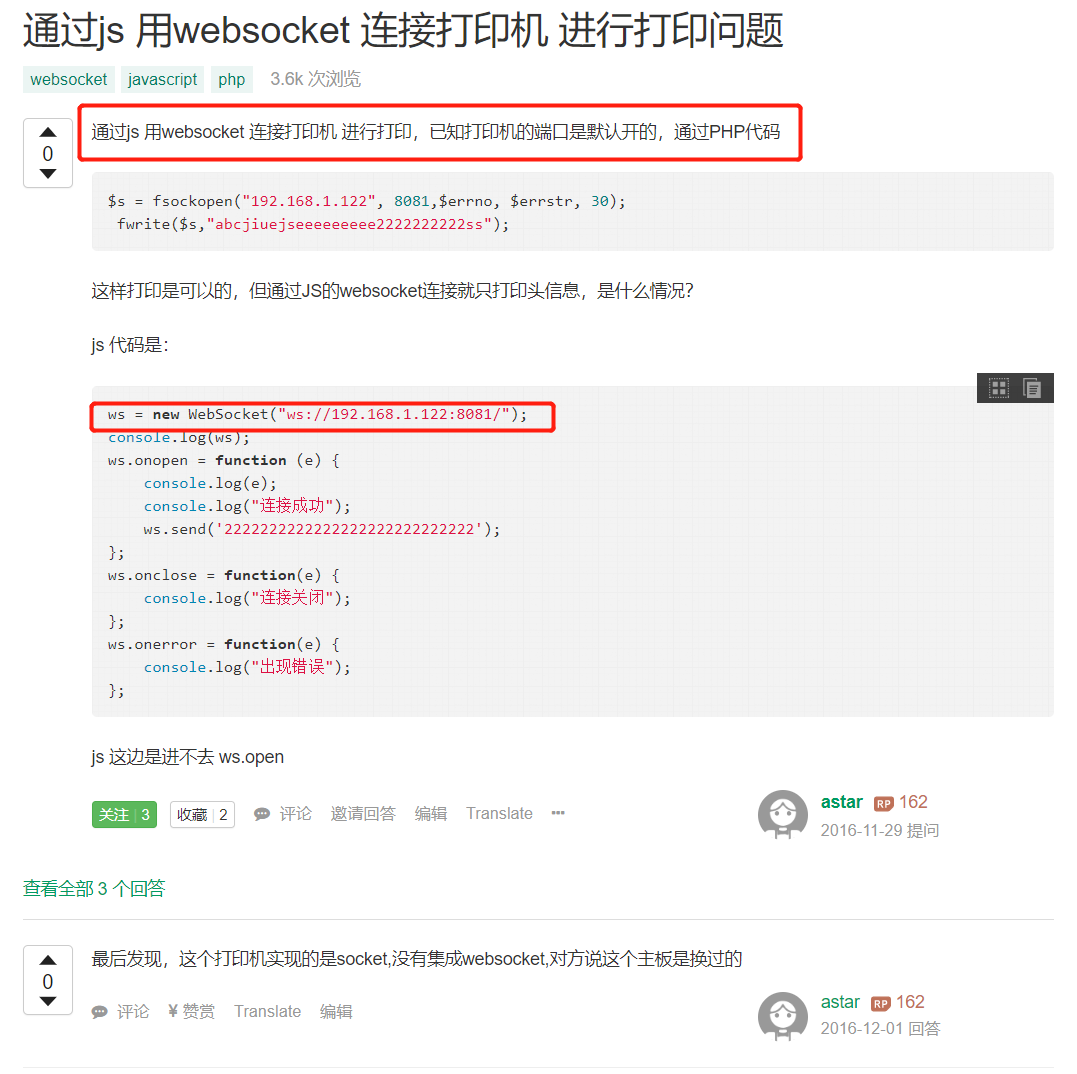 因为TCP是端对端的传输,因此socket可以实现实时聊天,即websoket应运而生。扯远了,话再回到打印机上面,如果通过websocket能直接在浏览器上访问打印机吗?即通过网页直接调用IP地址上的打印机。注意:这里不是点击浏览器上的打印按钮,直接打印哦,这种方式是浏览器作为本地软件访问本地打印机,而不是通过websock直接访问,区别是一个需要打印确认窗口,一个不需要直接打印!!