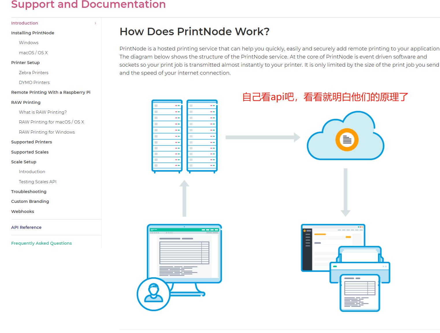 - 然后小王的app通过调用Rest APi去访问关联的打印机和电脑,因为万能软件可以发送原生的native的打印命令,从而实现云打印功能。