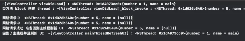 NSLog(@"类方法 block 创建 thread : %s : %@", __func__, [NSThread currentThread]);