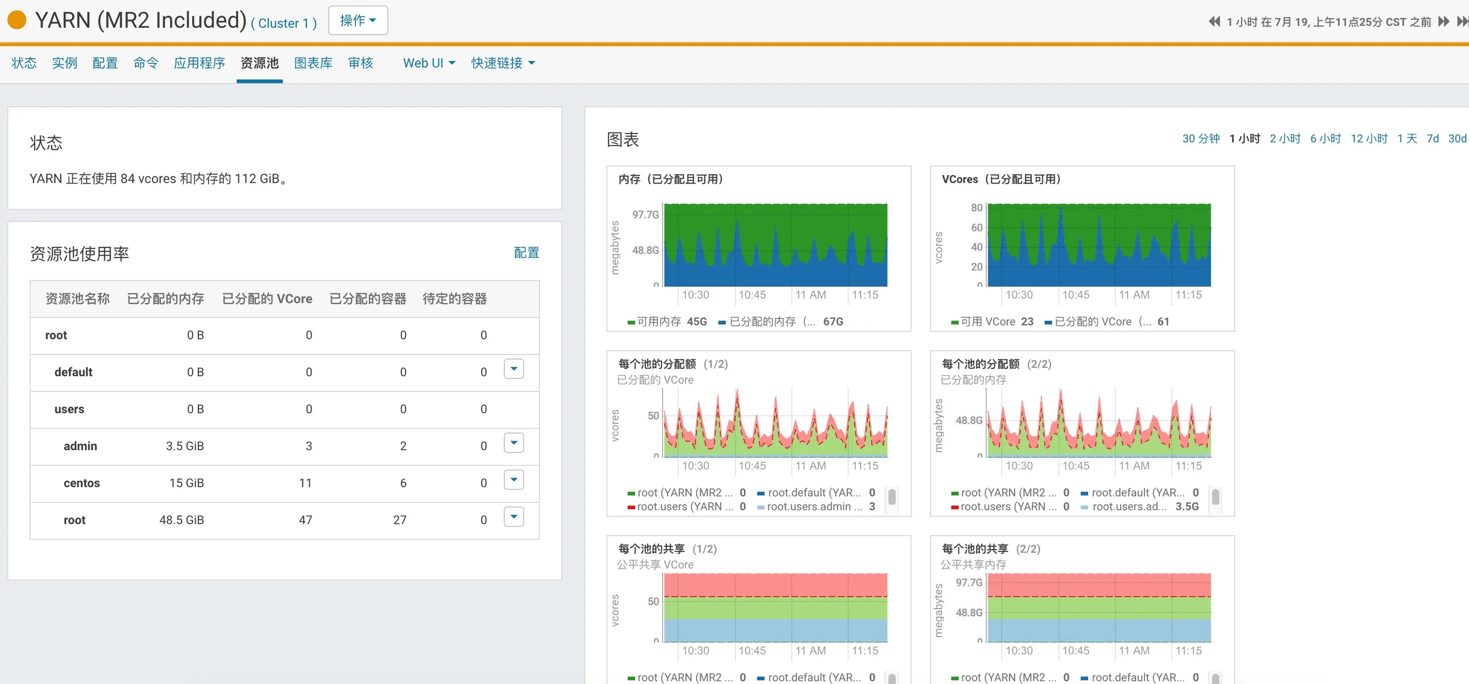 拿到这个数据,你也可以写一个页面来可视化的展示它,给大家看一下 CDH 对于Yarn 的部分监控: