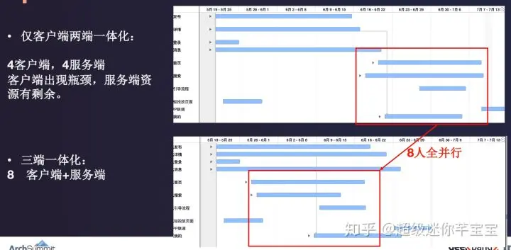 - 以往的架构是云、端分开架构的,一体化后有了更多的架构下沉空间,从而带来了总工作量1+1<2的可能