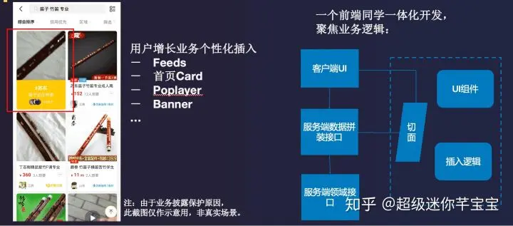 案例二,一体化在业务闭环方面的体现。负责增长的一位开发同学,专注在增长业务上,在合适的情况下为合适的人投放合适的内容,以此带来用户的增长和活跃效果。一体化的方式下,可以统一云、端的切面,业务研发不再受云、端的限制。