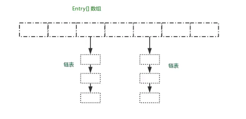 HashMap的链表元素对应的是一个静态内部类Entry,Entry主要包含key,value,next三个元素