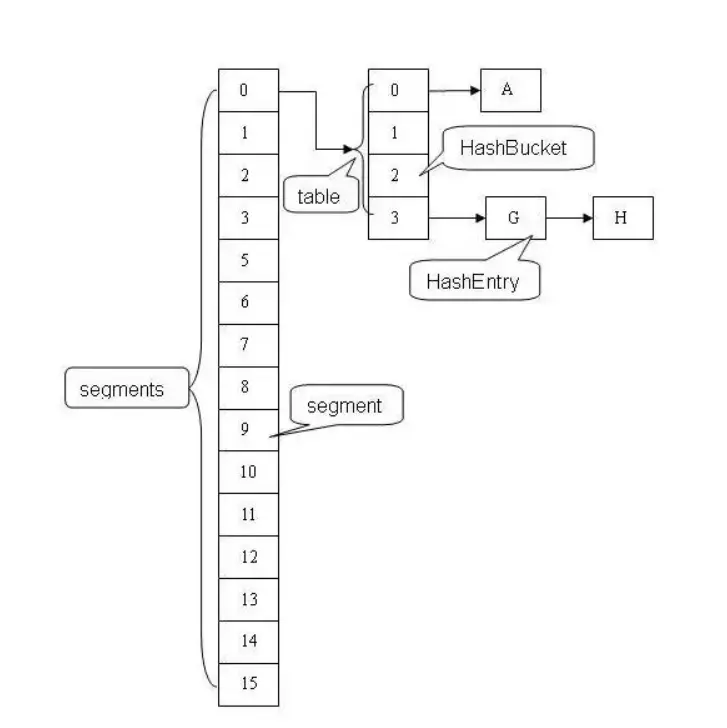 Segment是一种可重入锁ReentrantLock,在ConcurrentHashMap里扮演锁的角色,HashEntry则用于存储键值对数据。一个ConcurrentHashMap里包含一个Segment数组,Segment的结构和HashMap类似,是一种数组和链表结构, 一个Segment里包含一个HashEntry数组,每个HashEntry是一个链表结构的元素, 每个Segment守护者一个HashEntry数组里的元素,当对HashEntry数组的数据进行修改时,必须首先获得它对应的Segment锁。