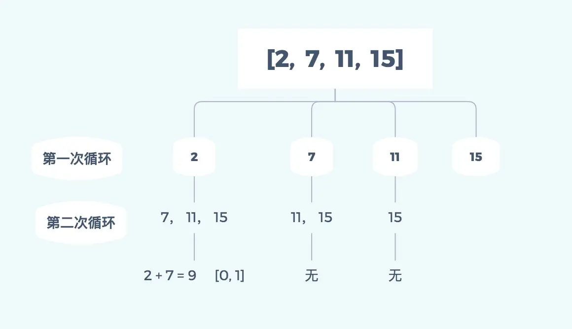 因为 nums[0] + nums[1] = 2 + 7 = 9