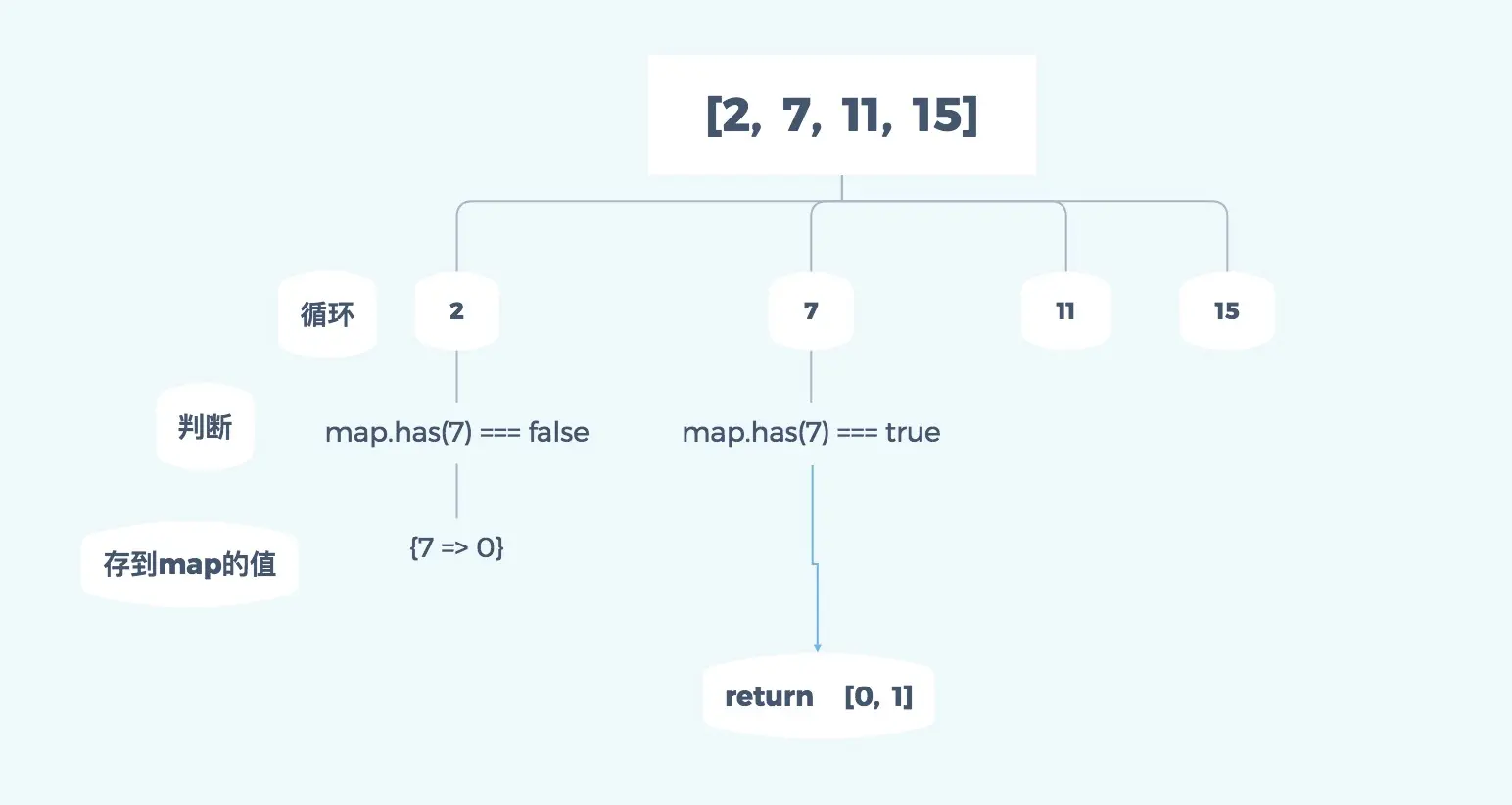 判断map里有没有当前项,没有的话,把(target - 当前项)和当前项的index一起存到map里
