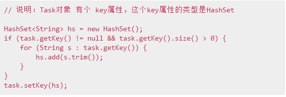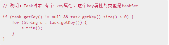 我这边是支持同一条短信向多个手机号发送,于是手机号我这边用的是HashSet来进行接收。对手机号进行trim我写下了如下的代码: