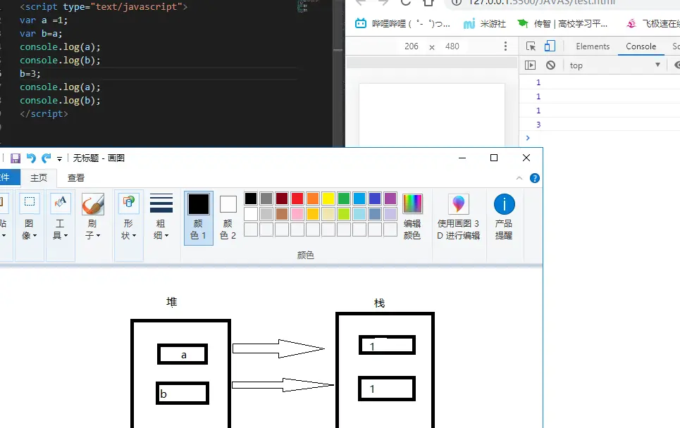 变量是用来存储数据的,由变量名和数据组成,分别在堆和栈里创建一个内存空间,栈里放数据,堆里放栈里数据位置的地址。例如写 var a=2;