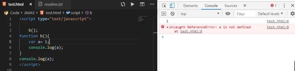 同样,如果是let声明在局部作用域中,在这之前如果在全局作用域里使用也会报错。