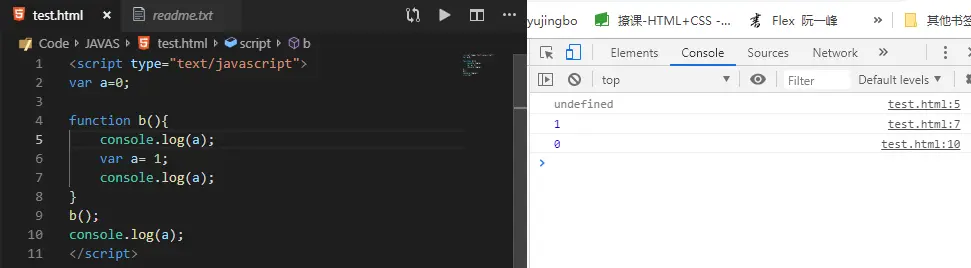 var 因为script的预编译机制,用var声明的变量会被提升到该代码块最前处。{