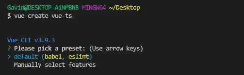 vue create vue-tsvue-ts 是我们的项目名称,执行上面的命令后,出现如下选项