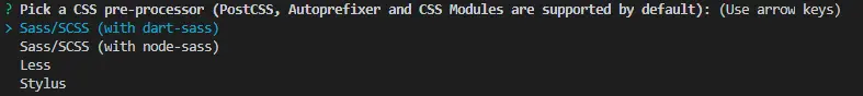 这里是选择CSS预处理器,可以自行选择一种。