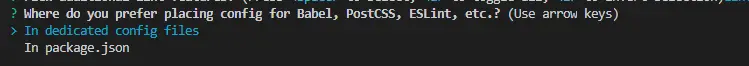这里是询问在什么地方配置 Babel,PostCSS, ESLint 等