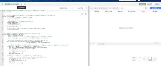 右边则是选择你这个策略的回测时间、交易金额,然后点击运行回测,就会出现一个比较简单的量化交易策略实现界面: