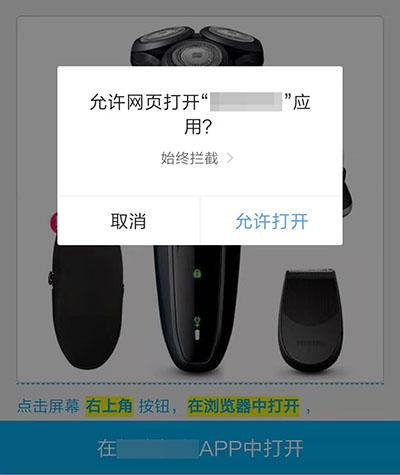 既不需要借道应用宝下载,也不用手动操作打开浏览器,用户在社交平台(微信、QQ、微博等)上打开第三方 App 时,系统将自动调用手机默认浏览器打开,在浏览器中申请打开该 App,若已下载则直接唤醒 App,若未下载则在浏览器中弹出安装包。
