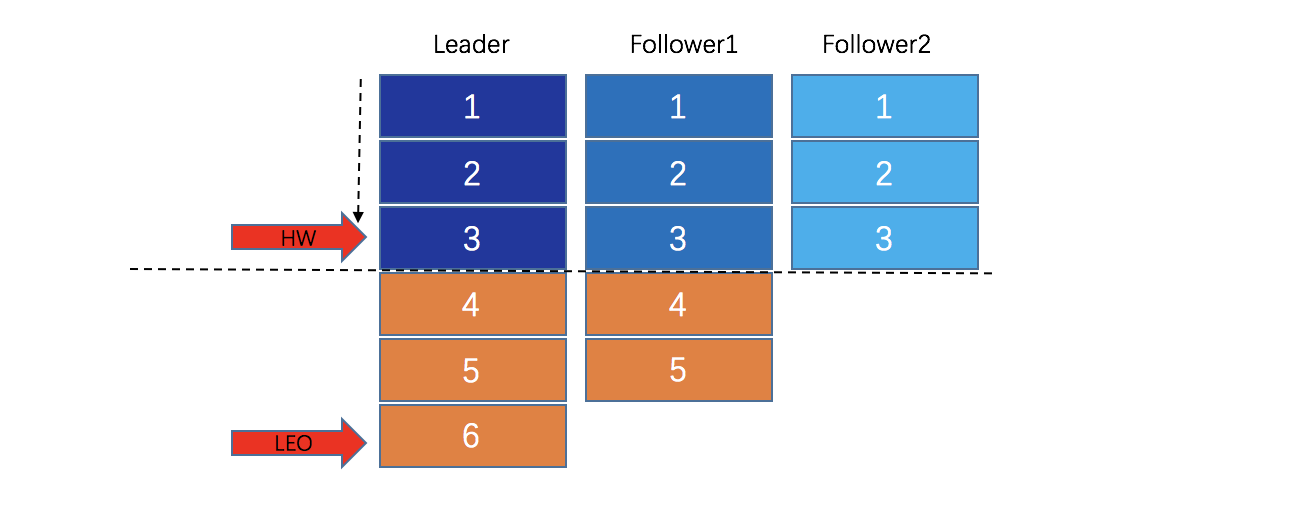 上面一节还涉及到一个概念,即 HW。HW 俗称高水位,HighWatermark 的缩写,取一个 partition 对应的 ISR 中最小的 LEO 作为 HW,consumer 最多只能消费到 HW 所在的位置。另外每个 replica 都有 HW,leader 和 follower 各自负责更新自己的 HW 的状态。 对于leader 新写入的消息,consumer 不能立刻消费,leader 会等待该消息被所有 ISR 中的 replicas 同步后更新 HW,此时消息才能被 consumer 消费。这样就保证了如果 leader 所在的 broker 失效,该消息仍然可以从新选举的 leader 中获取。对于来自内部 broker 的读取请求,没有 HW 的限制。